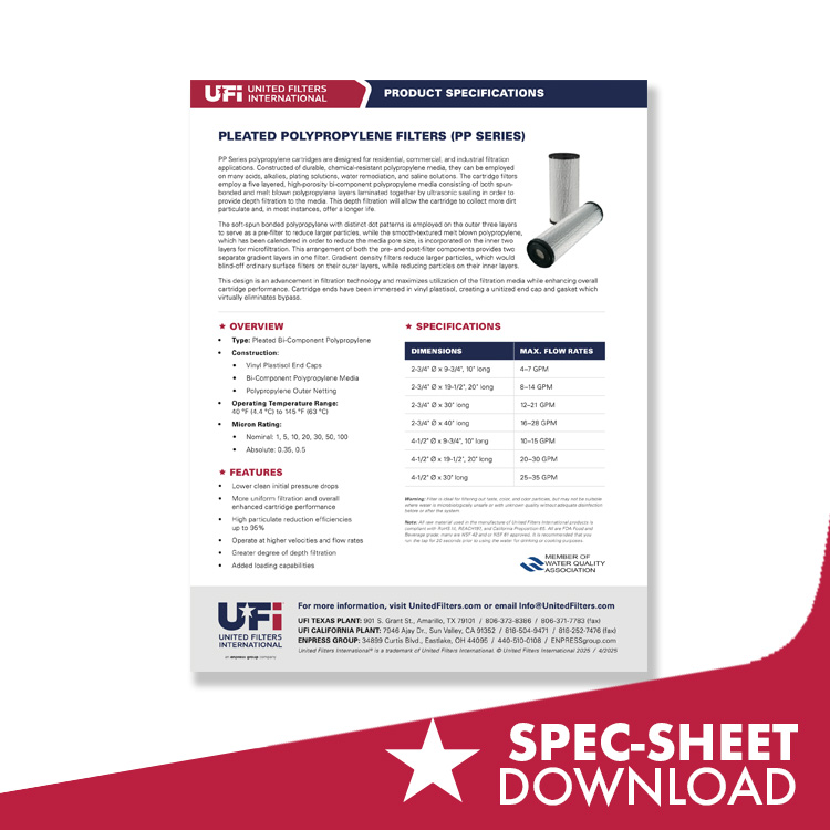 UFI PLEATED FILTERS are an alternative to string wound or spun molded filters.