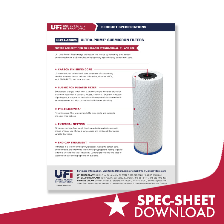 UFI Ultra-Prime® Filters merge the best of two worlds by combining electrostatic pleated media with a US-manufactured proprietary high-efficiency carbon block core.